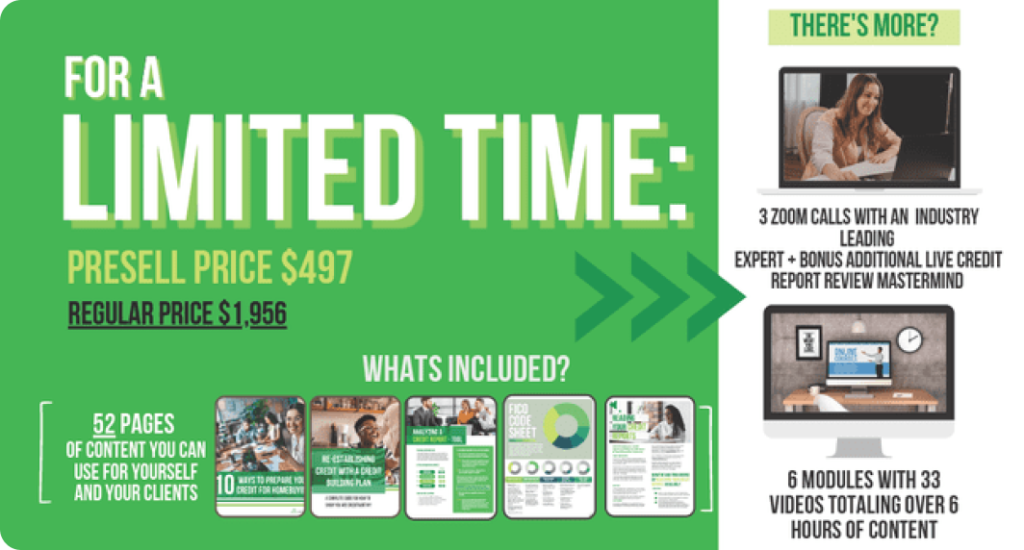Plus, when you purchase before midnight on July 15th, you’ll also get access to an exclusive webinar walking you through credit reports live with a credit repair specialist. (Value: $250)